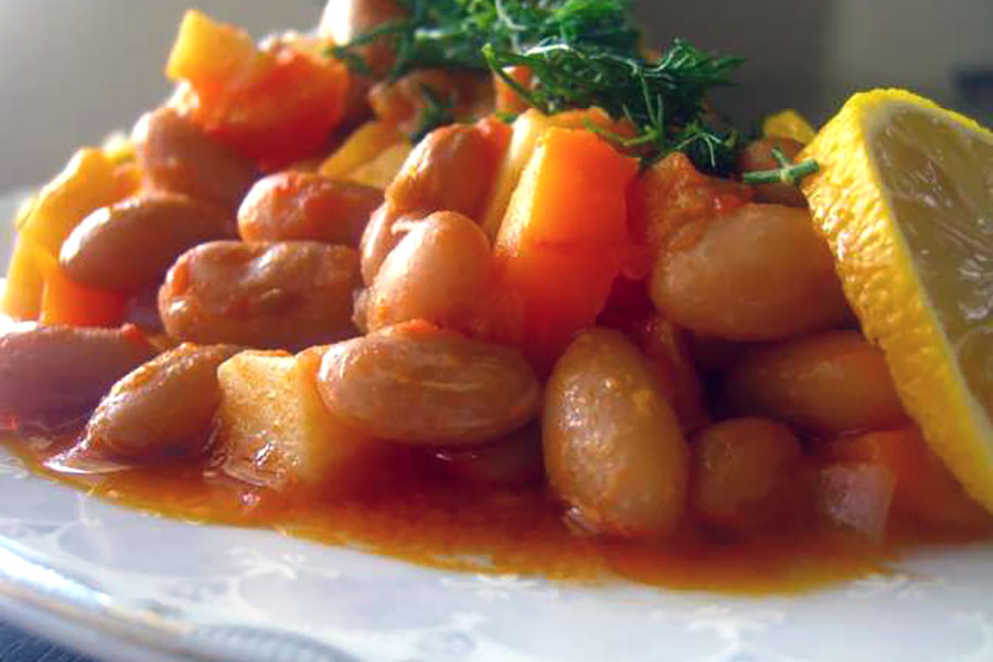 Barlotti beans cooked in olive oil, onions, tomatoes, garlic and lemon