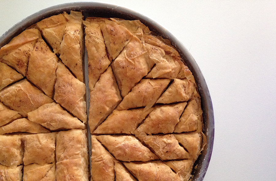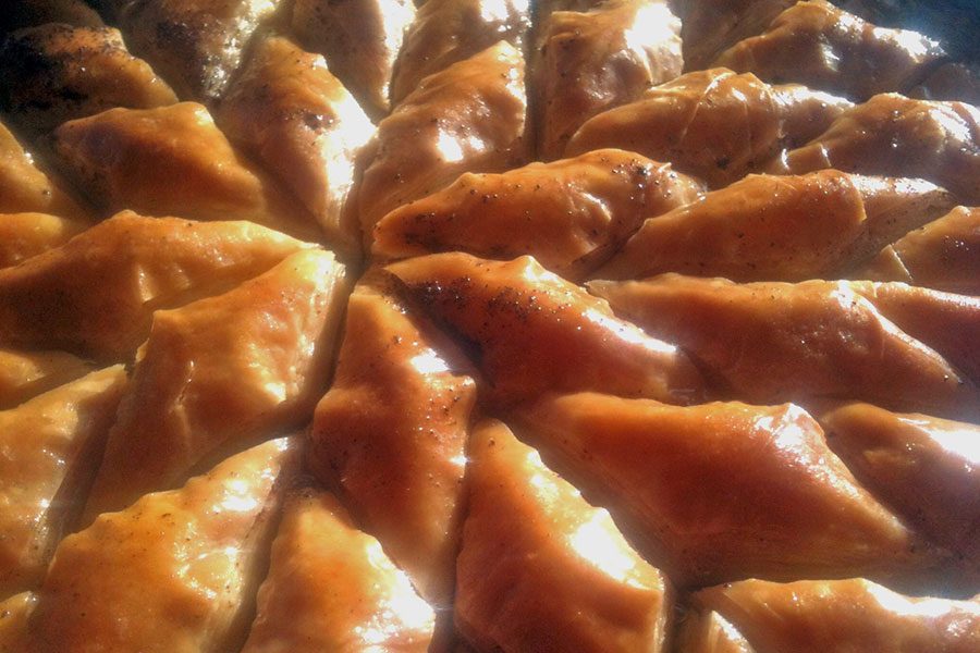 Sweet phyllo pastry filled with pistachios and sweetened with honey