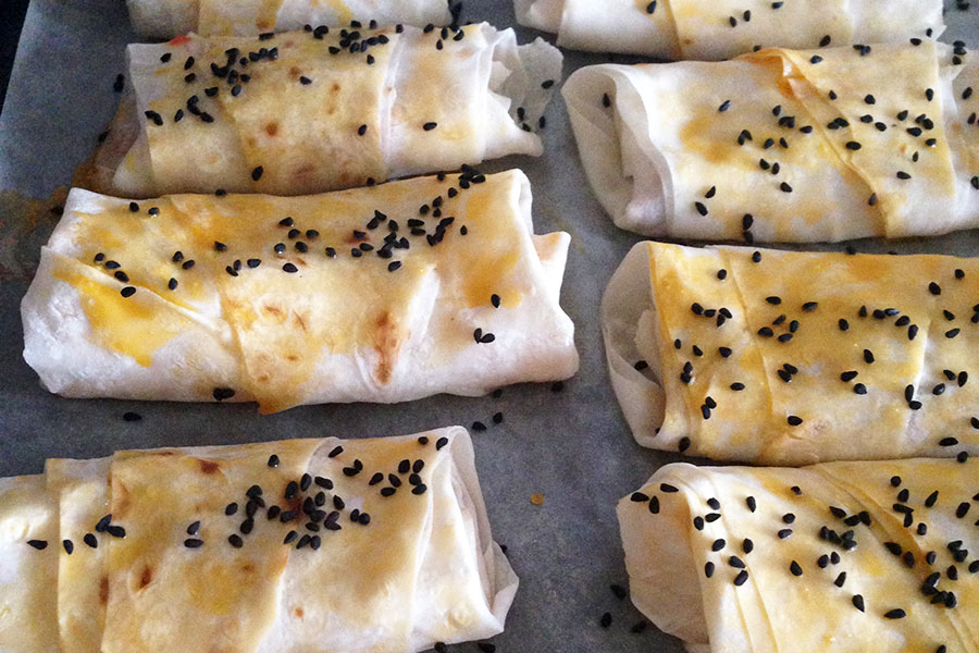 An Ottoman dish of phyllo pastry filled with meat, onions or cheese
